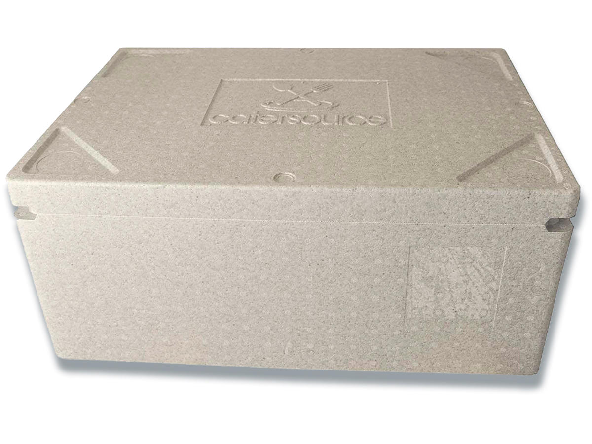 Termokasse med låg fra Catersource, har plads til 40 ltr, og er fremstillet af H-EPS. Catersource termokasse til transport af indpakket fødevarer holder indholdet friskt og klart til leveringen. Termokassen er fremstillet af H-EPS og fås i en neutral lysegrå farve.