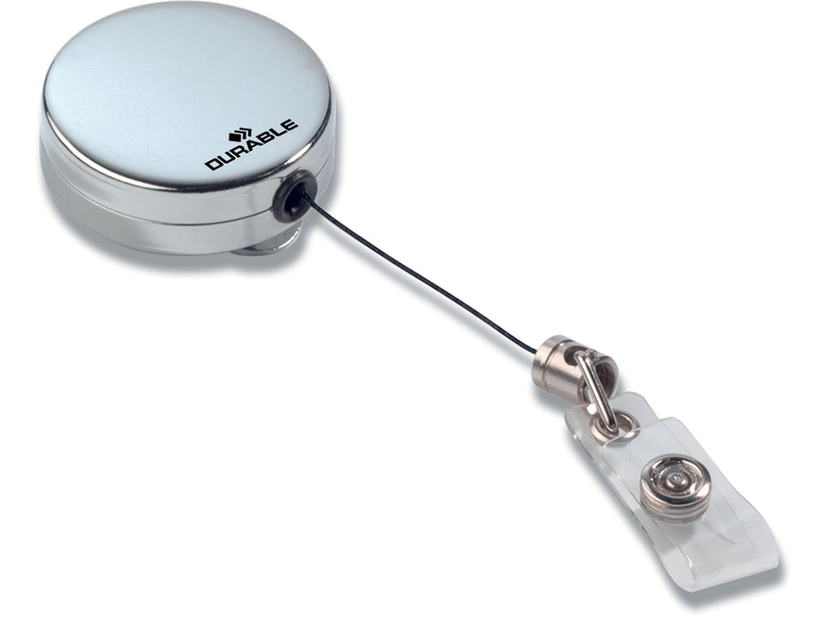 Stilren yoyo-holder med plaststrop med trykknap, velegnet til navneskilte og kortholder med hul. Af forkromet metal. Med ekstra stærk metalclips på bagsiden af yoyo til fastgørelse i dit bælte eller linning. Kan trækkes ud til 80 cm længde. Ø 40mm.