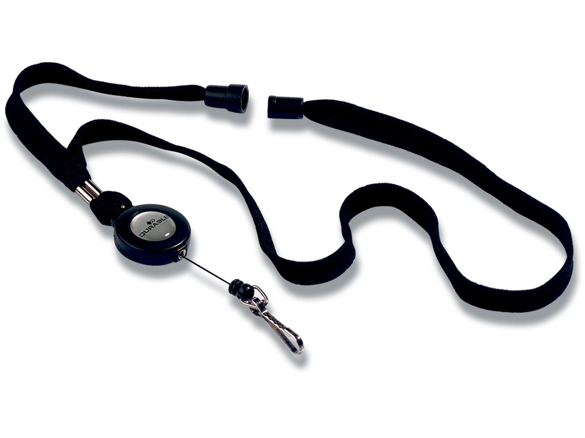 10mm bred tekstil halsbånd med yoyo med 80 cm udtræk og metalhage. Halsbåndet har sikkerhedslås der åbner, hvis halsbånd bliver fanget. Kan f.eks. kombineres med navneskilt og kortholder. Længde textilhalsbåndet: 44cm