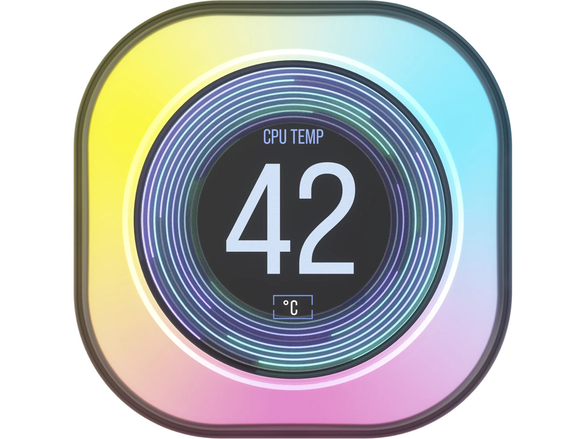 A custom 2.1" IPS LCD screen with 480x480 resolution and an ultra-bright 600cd/m² backlight displays real-time CPU temperature, your favorite animated GIF, funniest meme, or your team’s logo at 30 FPS in over 16.7 million colors.