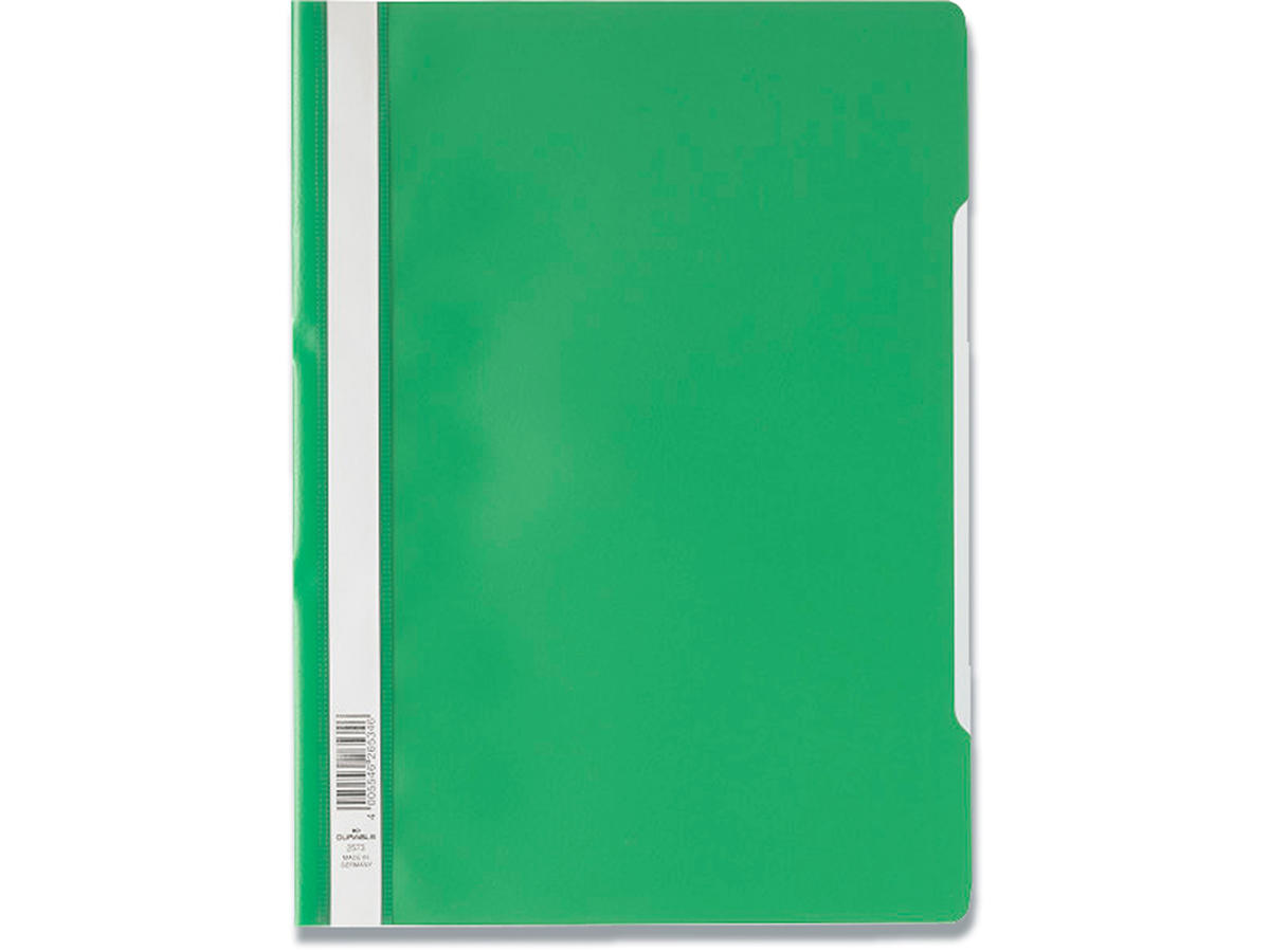 Clear View Folder. A4 PP kvalitetsmappen fra DURABLE er et alsidigt valg til alt fra rapporter og citater til noter og dokumentlagring. Vælg mellem en lang række moderne farver og opmærkningsmuligheder. Clear View Folder tilbudsmappe med gennemsigtigt frontside og farvet bagside. Opbevaring af udstansede ark via arkiveringsmekanisme. En udskæring i omslaget gør det muligt at dreje siderne. Filer kan ses tydeligt ved hjælp af etikettering i fuld længde. Kan eftermonteres med FILING ACCESSORY art.nr. DU2996 til arkivering i ringbind m.m.. Miljøvenlig af materialet polypropylen.
