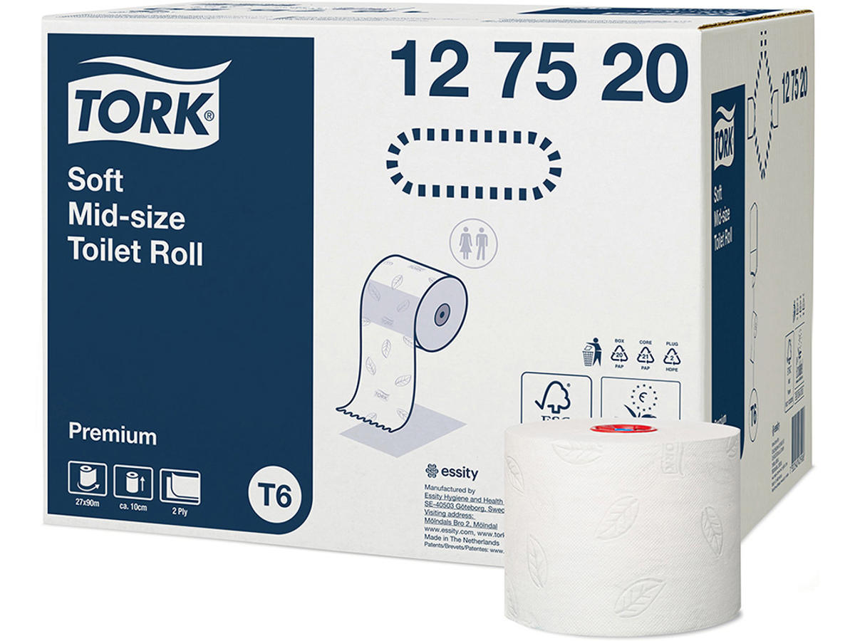 Tork Twin Mid-size dispensersystem til toiletpapir er et moderne og effektivt system, der er velegnet til toiletter med medium trafik og fokus på den gode brugeroplevelse. Det sikrer et højt niveau af effektivitet, og at der altid er toiletpapir tilgængeligt. Tork Soft Mid-size Premium Toiletpapir tilbyder et kvalitets-look med optimal funktionalitet.