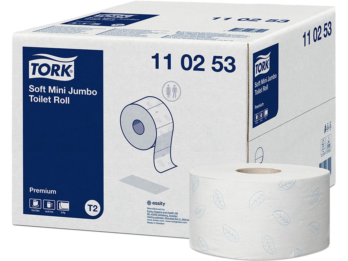 Tork Mini Jumbosystemet står for tidseffektivitet og reducerede omkostninger, da det tilbyder meget mere toiletpapir end standardruller. Tork 2-lags Soft Jumbo Toiletpapir Premium giver den perfekte kombination af kvalitets-look og funktionalitet og er velegnet til toiletter med høj brugerfrekvens.