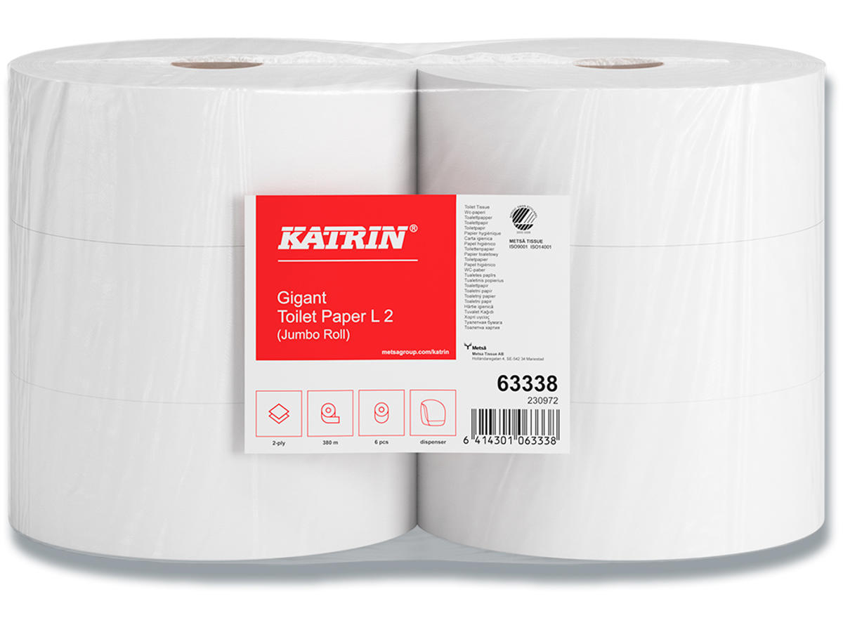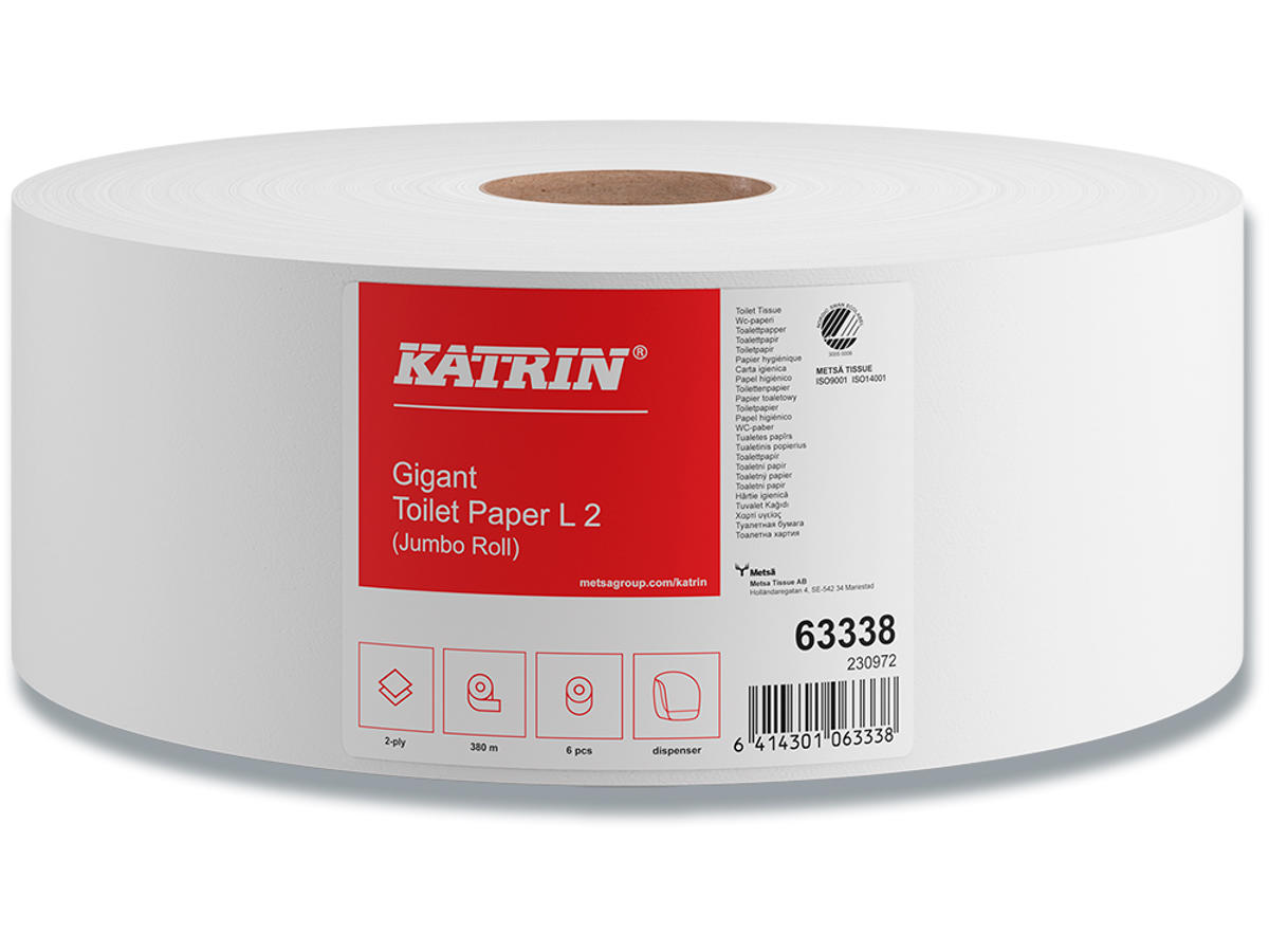 Katrin har gode egenskaber, når det gælder funktion og kvalitet. Denne jumborulle er en stor toiletrulle af høj kvalitet egnet til alle offentlige miljøer, samt især til steder med et højt forbrug. Papiret er blødt og med komfort i højsæde.