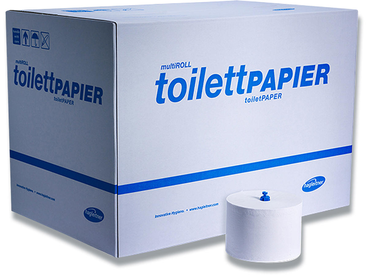 Hagleitners 2-lags toiletpapir er skabt af nyfiber. Toiletrullen passer i systemdispenseren med plads til 2 ruller fra samme serie. Dispenserens hybride funktion garanterer præcis dosering af toiletpapiret.