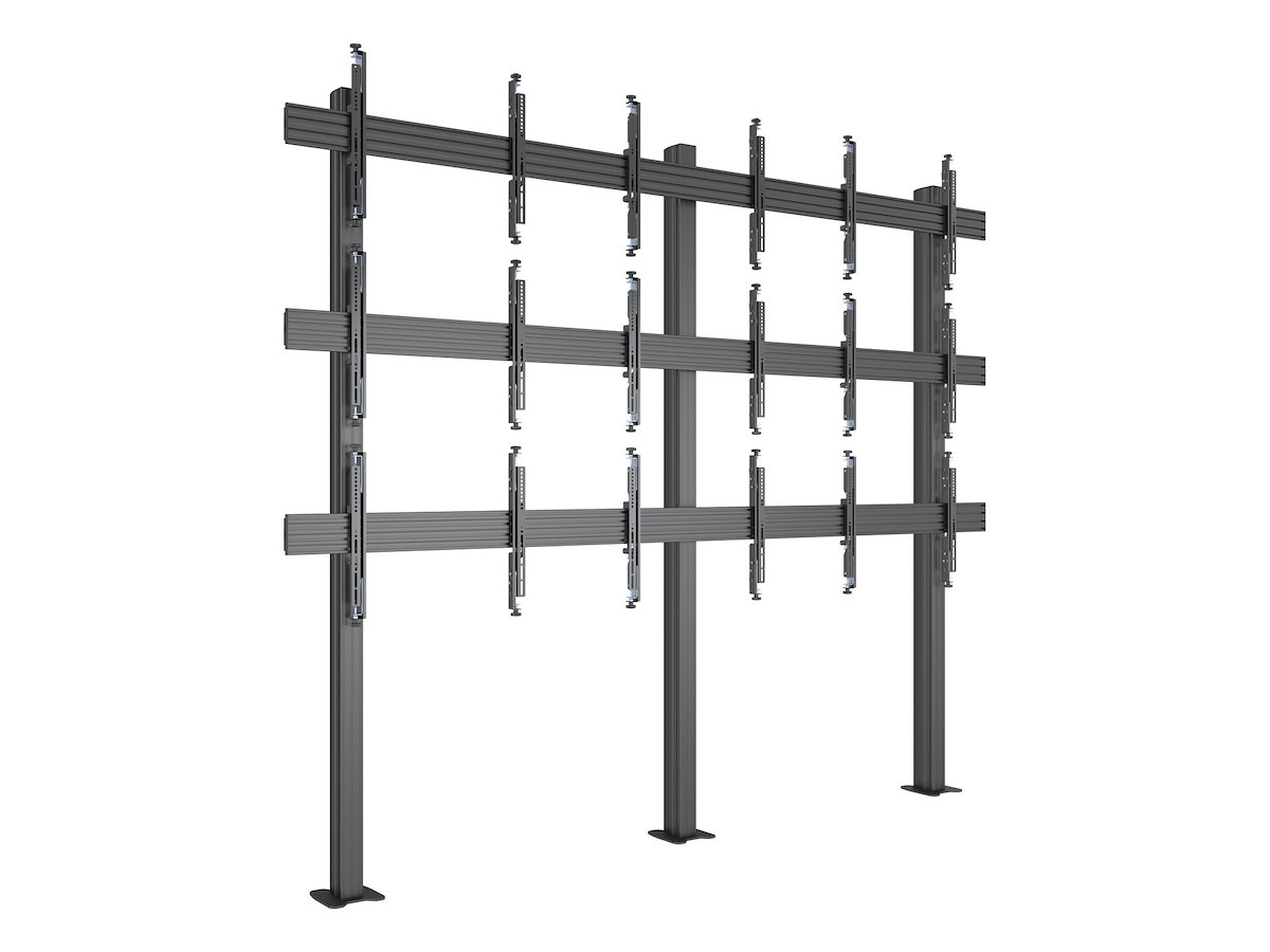 Multibrackets® Pro Series M Floormount Column Pro 3x3 is a modular video wall floorstand designed for maximum flexibility, fast installation, and high visual impact. This triple-sided configuration supports nine displays (three on each side), making it ideal for large open areas such as malls, transit hubs, and exhibition halls.