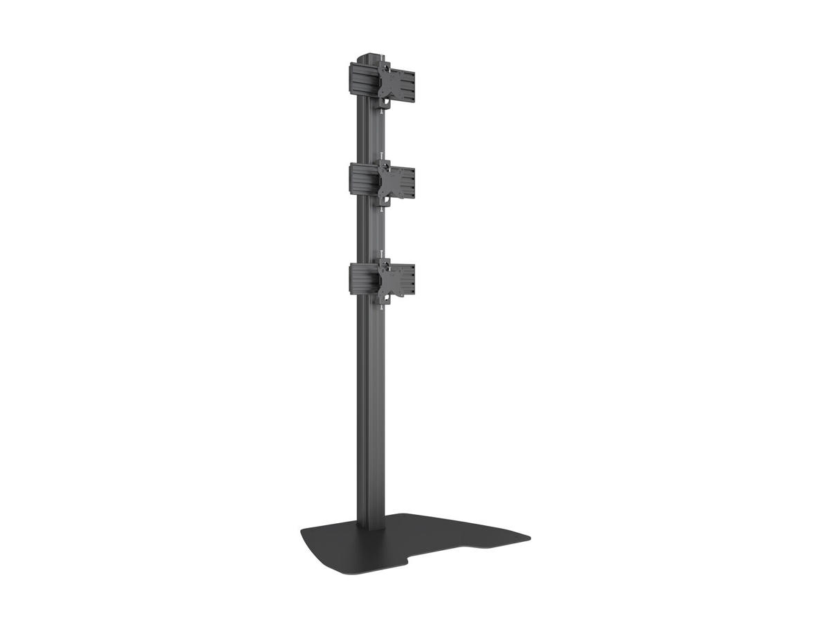 The stand is compatible with most computer monitors that use VESA 75 and 100 standards. Thanks to its modular construction, installers can tailor the M Floorstand Column to meet specific client needs, with the ability to modify, update, or reconfigure over time. The system can be customized with 50mm black, brass, or chrome tubes, providing an adaptable display solution for retail stores, malls, or other public spaces. Screens can be mounted either with tilt or fixed displays, and can be positioned side-by-side or stacked.
