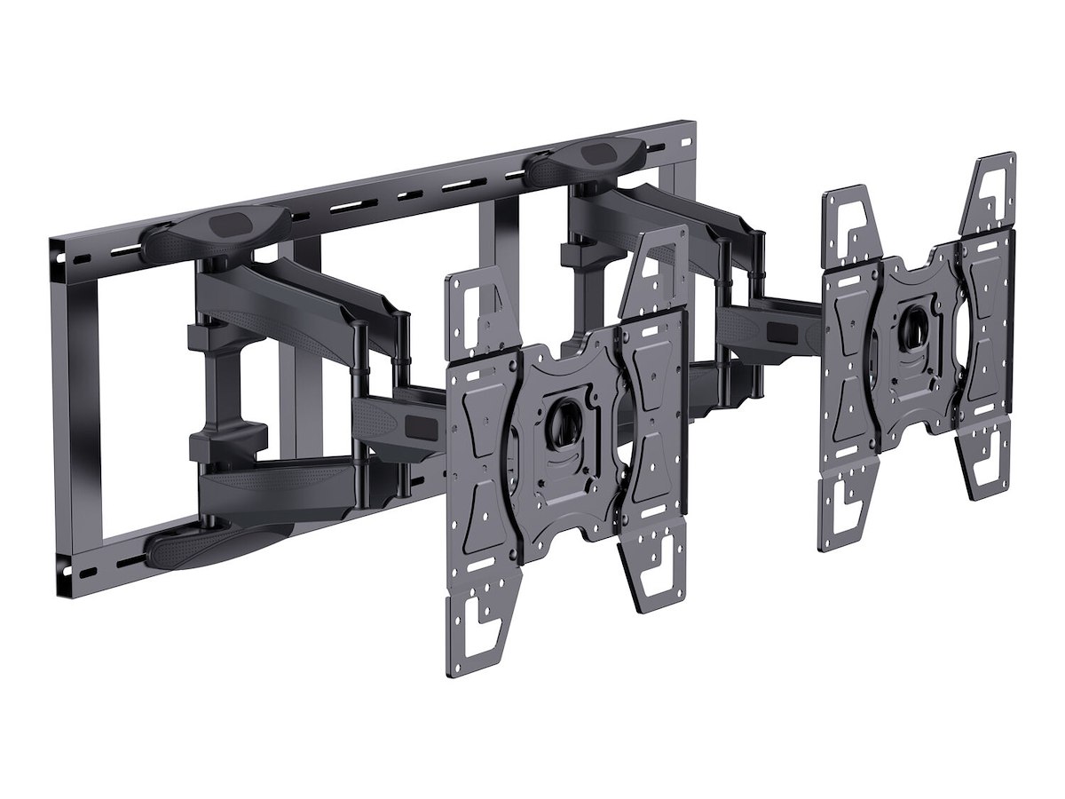 Built on the trusted Pro Series modular platform, this mount offers adjustable depth and angle for both screens, allowing precise customization based on store layout and visibility goals. The gable design enhances in-store presentations while maintaining seamless integration into store décor.