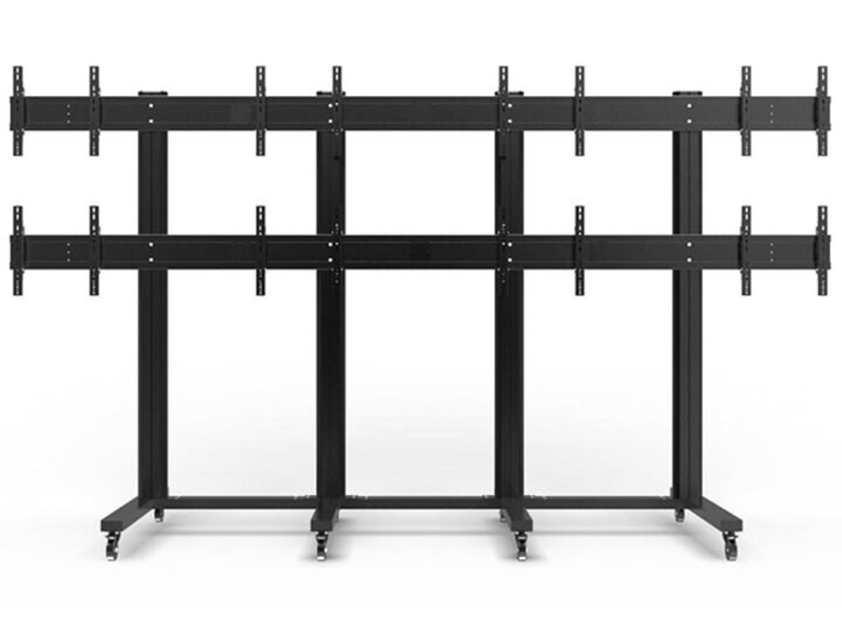 This 8 screen freestanding video wall cart makes it possible to construct video wall in prominent locations for temporary applications.