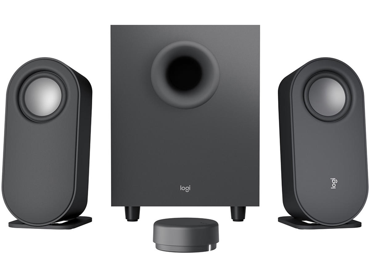 Logitech Z407 Bluetooth computer speakers with subwoofer and wireless control- Dial into great sound for your desktop with Z407 Bluetooth computer speakers. Get immersive sound with a down-firing woofer that adds “boom” to your sound, and digital signal processing that keeps clarity across the sound spectrum. Stylish oval satellite speakers lay horizontally or vertically. Position them however you like to curate your space. Control it all with the Bluetooth-enabled wireless control dial. Adjust bass and volume, skip and pause tracks, from up to 30-meter line of sight range. Connect with Bluetooth, USB-A, or 3.5 mm inputs.