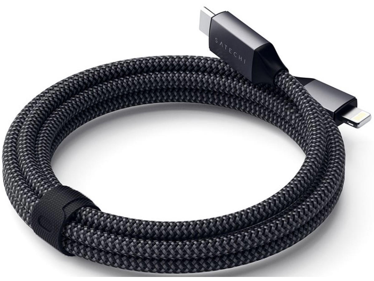 Introducing the Satechi USB-C to Lightning Charging Cable featuring MFi certification, extended cord length, and elegant braided design to power your Apple iOS devices with ease. Charge in comfort – from your bed or couch, with its extended cable length of 6 ft (1.8 mt) for a convenient, yet powerful charge wherever you are.