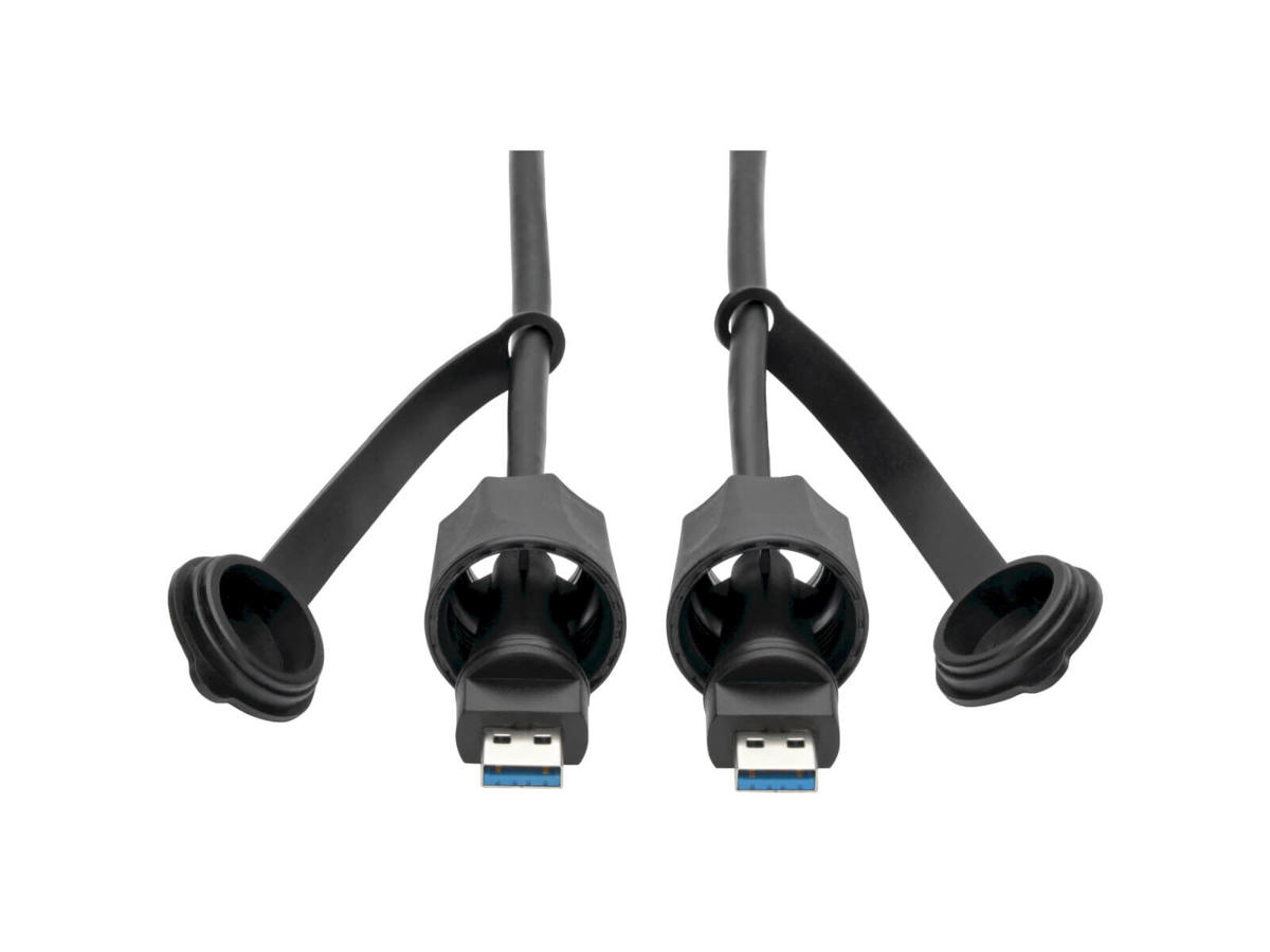 This three-foot (one-meter) industrial-grade USB-A to USB-A cable is ideal for connecting high-speed USB 3.0 equipment—for instance, a computer or server to a patch bay or industrial hub—in outdoor applications and other areas where protection from harsh elements is essential. The shielded cable and USB-A connectors are designed to withstand dust, debris and moisture that could threaten your IT infrastructure. Included dust caps protect the connectors when not in use.