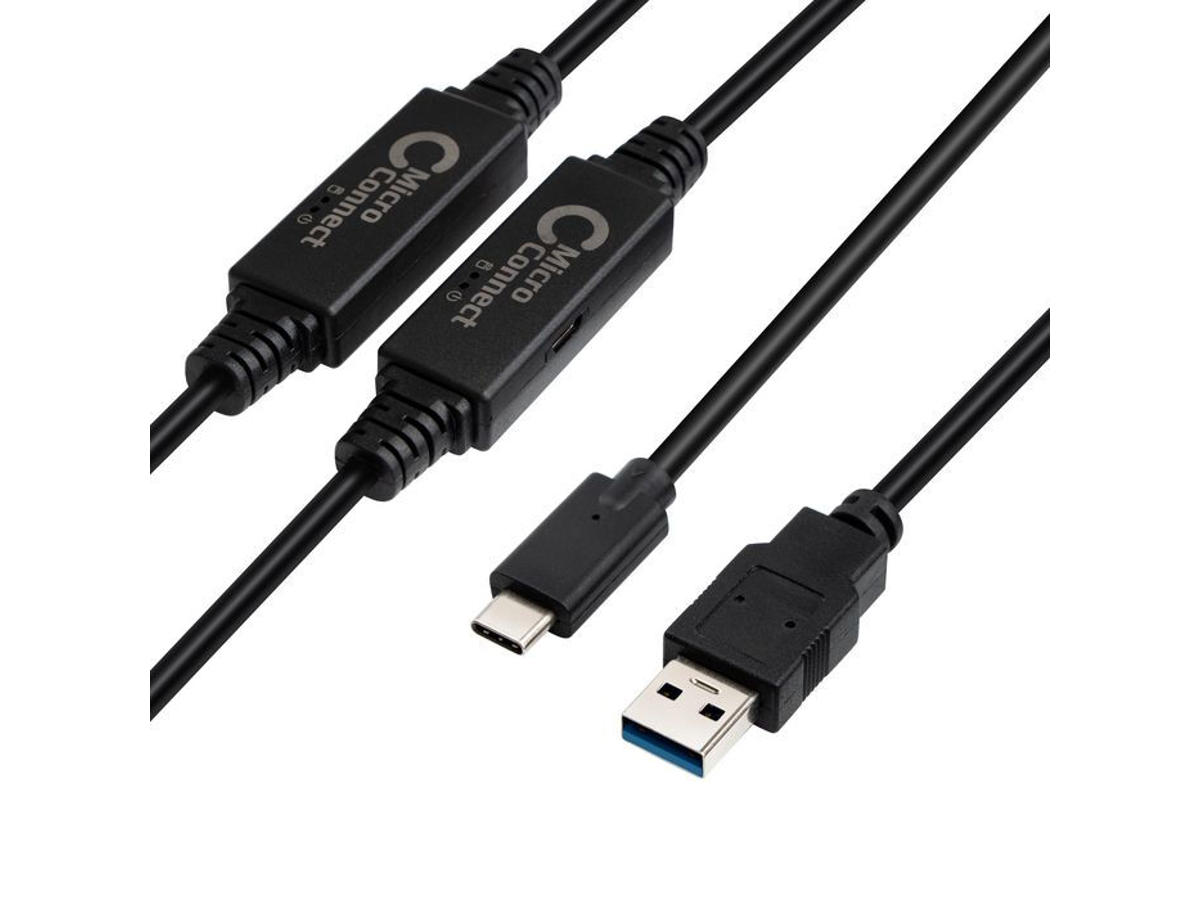 Microconnect USB3.1CA10AMP. Kabellængde: 10 m. Stik 1: USB C, Stik 2: USB A, USB version: USB 3.2 Gen 1 (3.1 Gen 1), Maksimal dataoverførselshastighed: 5 Gbit/sek., Stikforbindelse kontakter plettering: Nikkel, Produktfarve: Sort