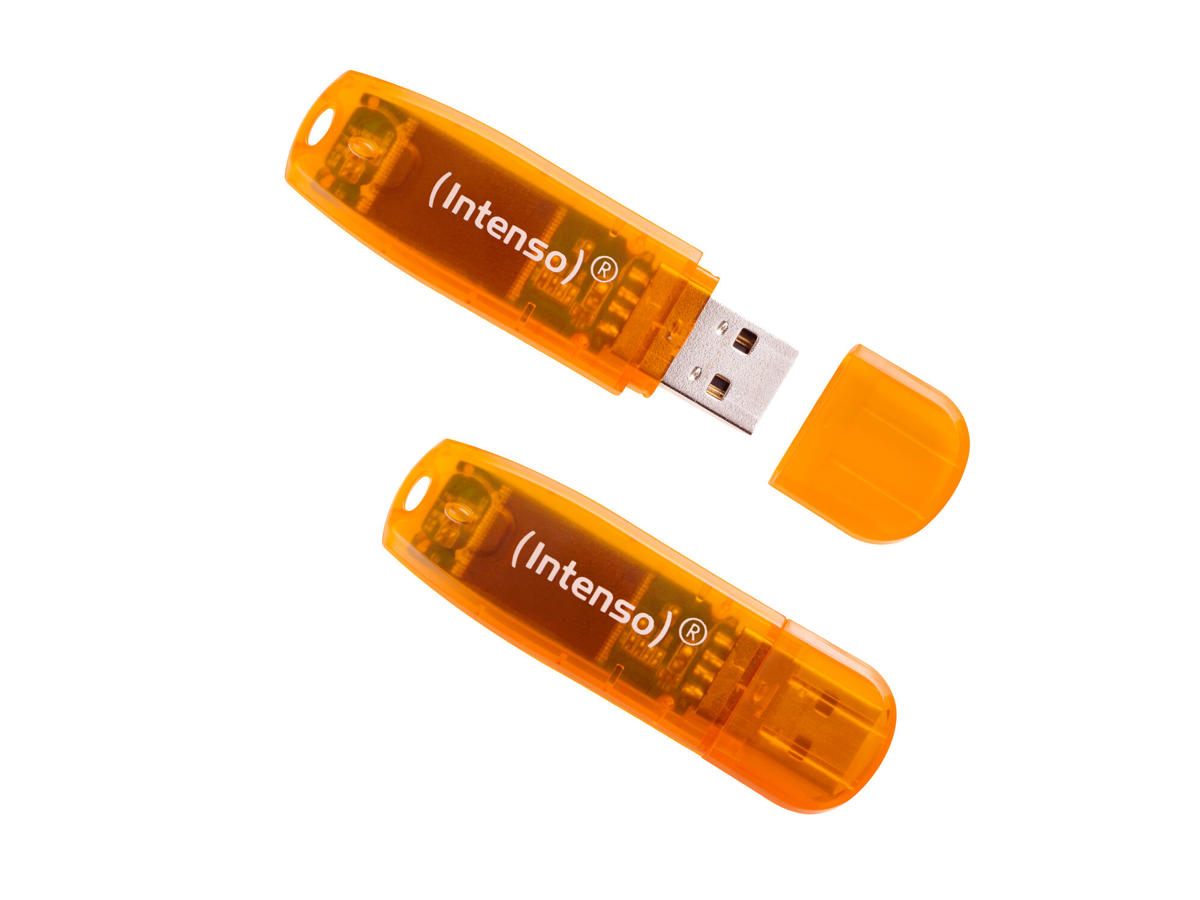 Intenso Rainbow Line 64GB Orange 2er. Kapacitet: 64 GB, Enhedsgrænseflade: USB Type-A, USB version: 2.0, Læsehastighed: 28 MB/s, Skrivehastighed: 6,5 MB/s. Formfaktor: Hætte, Produktfarve: Orange