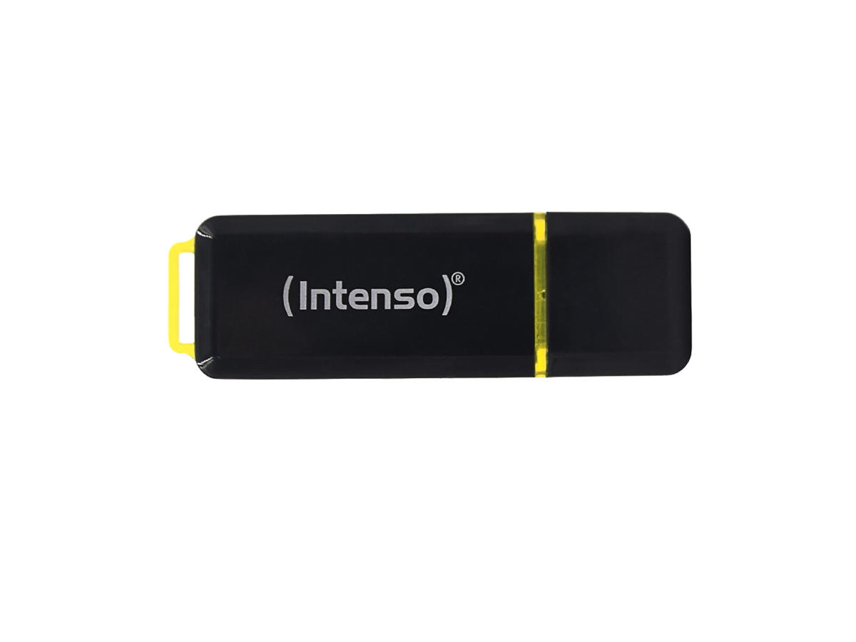 Intenso High Speed Line. Kapacitet: 64 GB, Enhedsgrænseflade: USB Type-A, USB version: 3.2 Gen 1 (3.1 Gen 1), Læsehastighed: 250 MB/s, Skrivehastighed: 50 MB/s. Formfaktor: Hætte. Vægt: 6 g. Produktfarve: Sort, Gul
