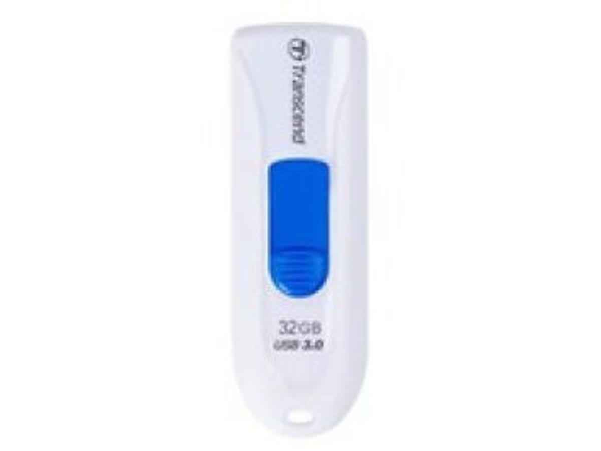 Transcend JetFlash 790 32GB. Kapacitet: 32 GB, Enhedsgrænseflade: USB Type-A, USB version: 3.2 Gen 1 (3.1 Gen 1). Formfaktor: Glide. Vægt: 4,9 g. Produktfarve: Hvid