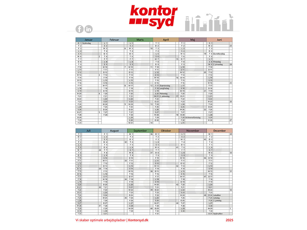 Kontor Syd 2026 Vægkalender