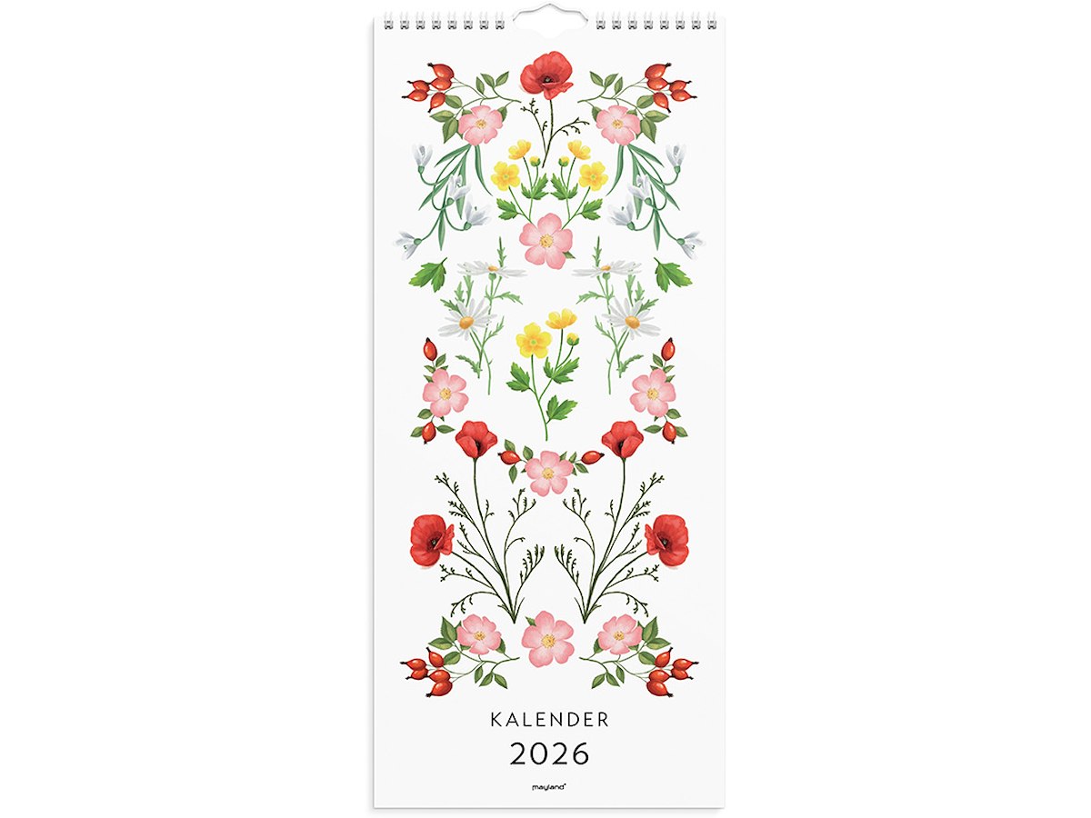 Dekorativ vægkalender i karton til vægophæng. Kalenderen er spiralindbundet og har smukke blomsterillustrationer. Vægkalenderen giver dig en oversigt over 1 måned ad gangen med plads til noteringer og kan anvendes som familiekalender eller billedkalender.