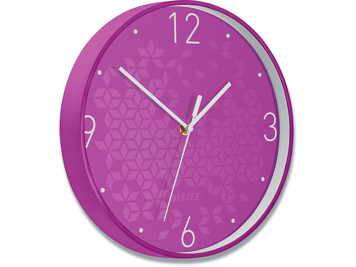 Stille vægur i iøjnefaldende WOW farver. 29 cm i diameter med en tofarvet ramme lavet i robust plastik kombineret med et glas front. Man kan ikke høre uret tikke, hvilket gør det ideelt til kontorer, studieområder eller i soveværelset. En del af Leitz WOW - et bredt produktsortiment til organisering på kontoret og på farten i iøjnefaldende farver med et sofistikeret design, som lader din personlighed skinne igennem.