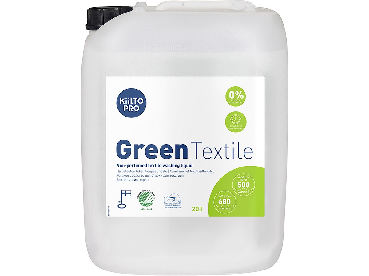 Tøjvask, Flydende, Kulørt og hvidt, Med farve, Uden parfume, 20 liter, Kiilto Pro Green Textile