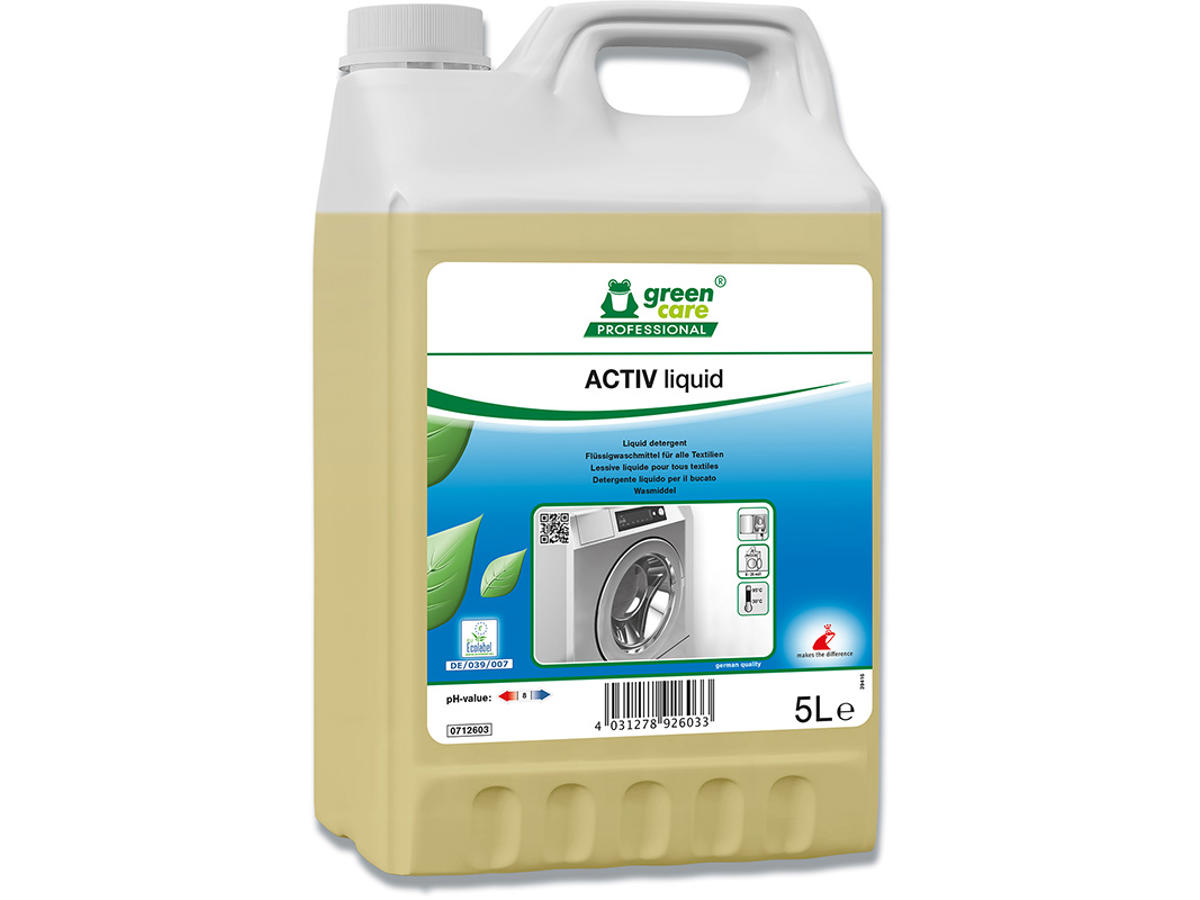 ACTIV liquid er et koncentreret universelvaskemiddel, der sikrer en høj vaskeydelse selv ved 30 °C. Produktet respekterer biologiske cyklusser og tager hensyn til folks helbred og rengøringspersonalers sikkerhed, er fri for blegemidler og kan derfor bruges til hvide eller farvede stoffer. ACTIV liquid indeholder naturlig aloe vera ekstrakter.