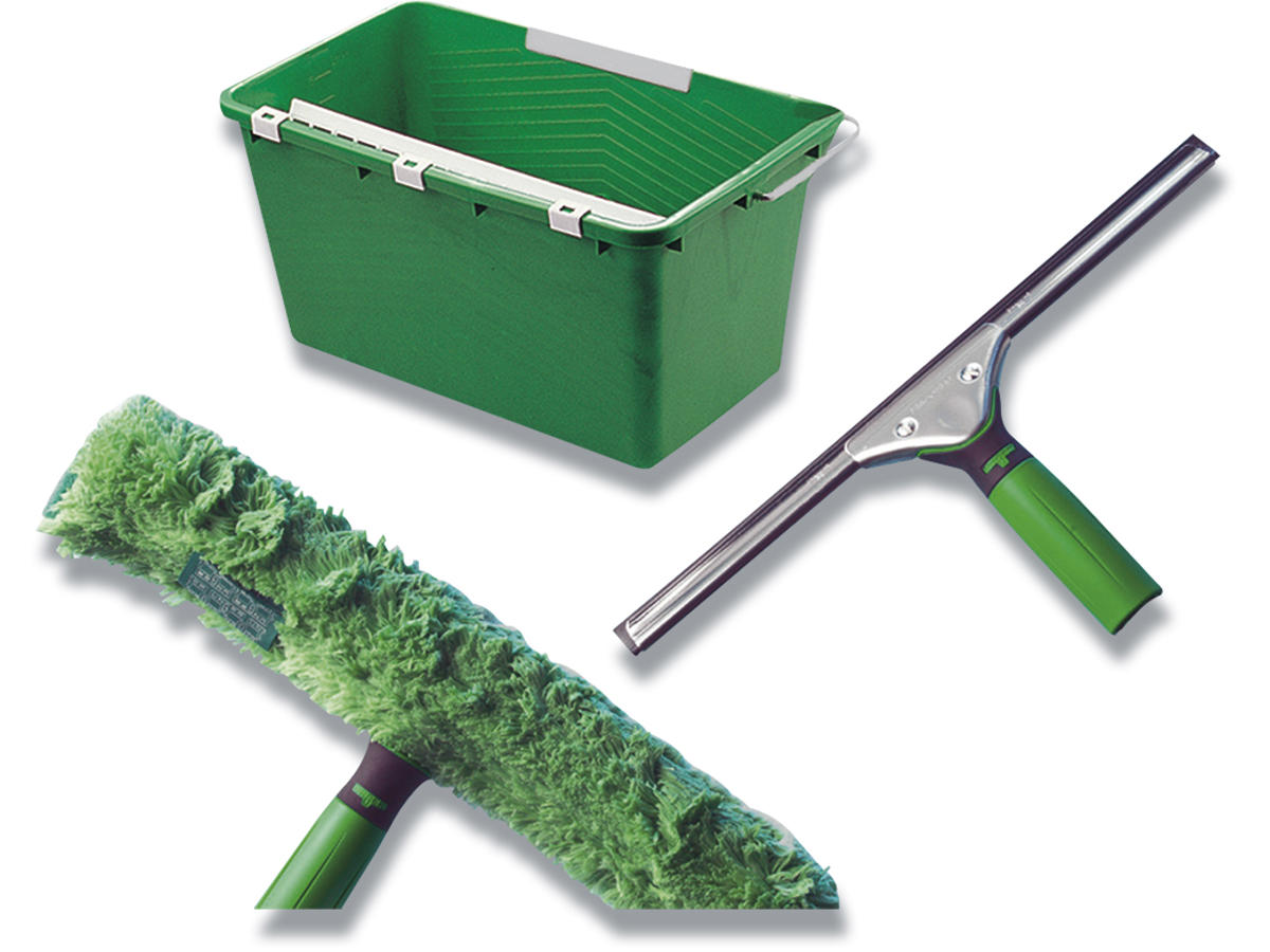 Praktisk startsæt der indeholder 1 stk. vinduesskraber 35 cm, 1 stk. holder til vinduesvasker 35 cm, 1 stk. vinduesvaskebetræk 35 cm, 1 stk. spand 18 liter