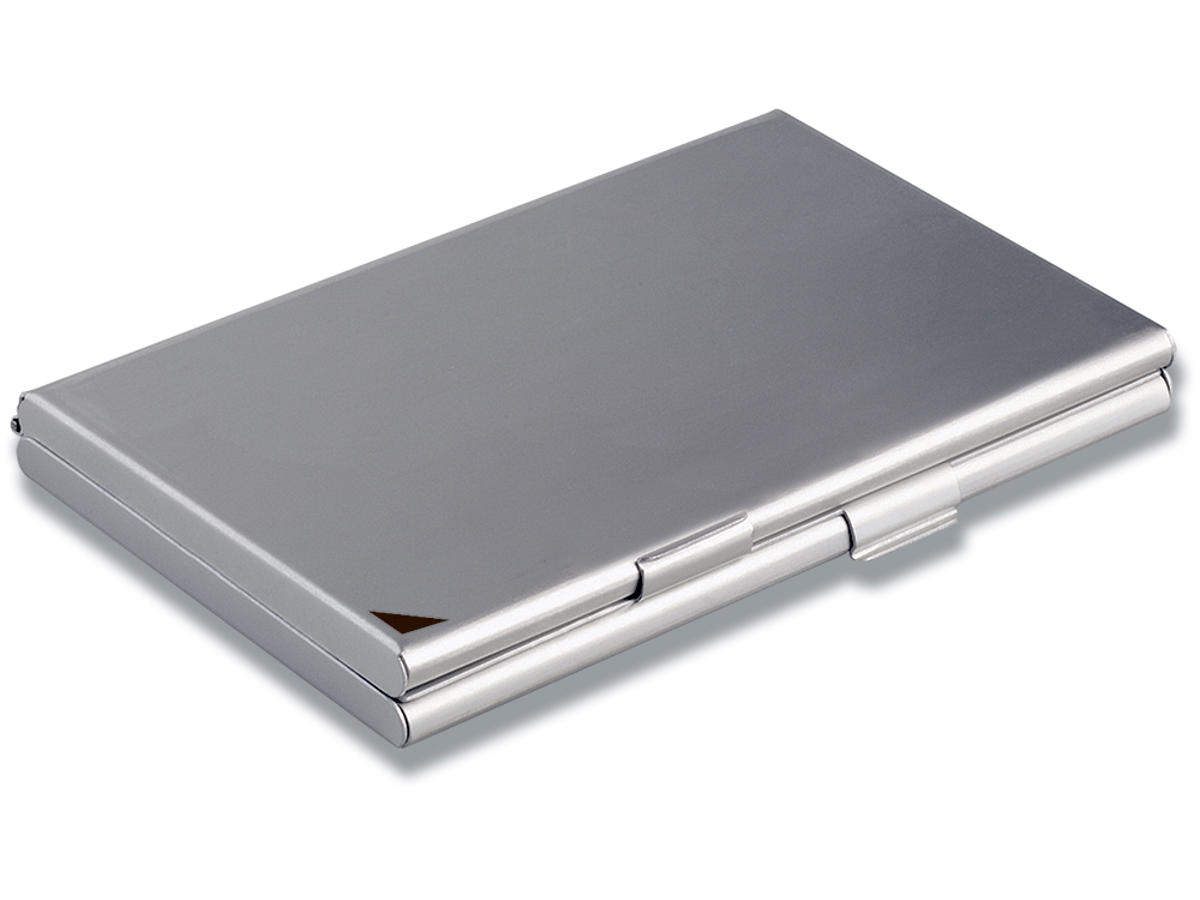 Visitkortholder i aluminium med to rum. Plads til 10 stk. visitkort per rum. Til visitkort i format 90x55mm.