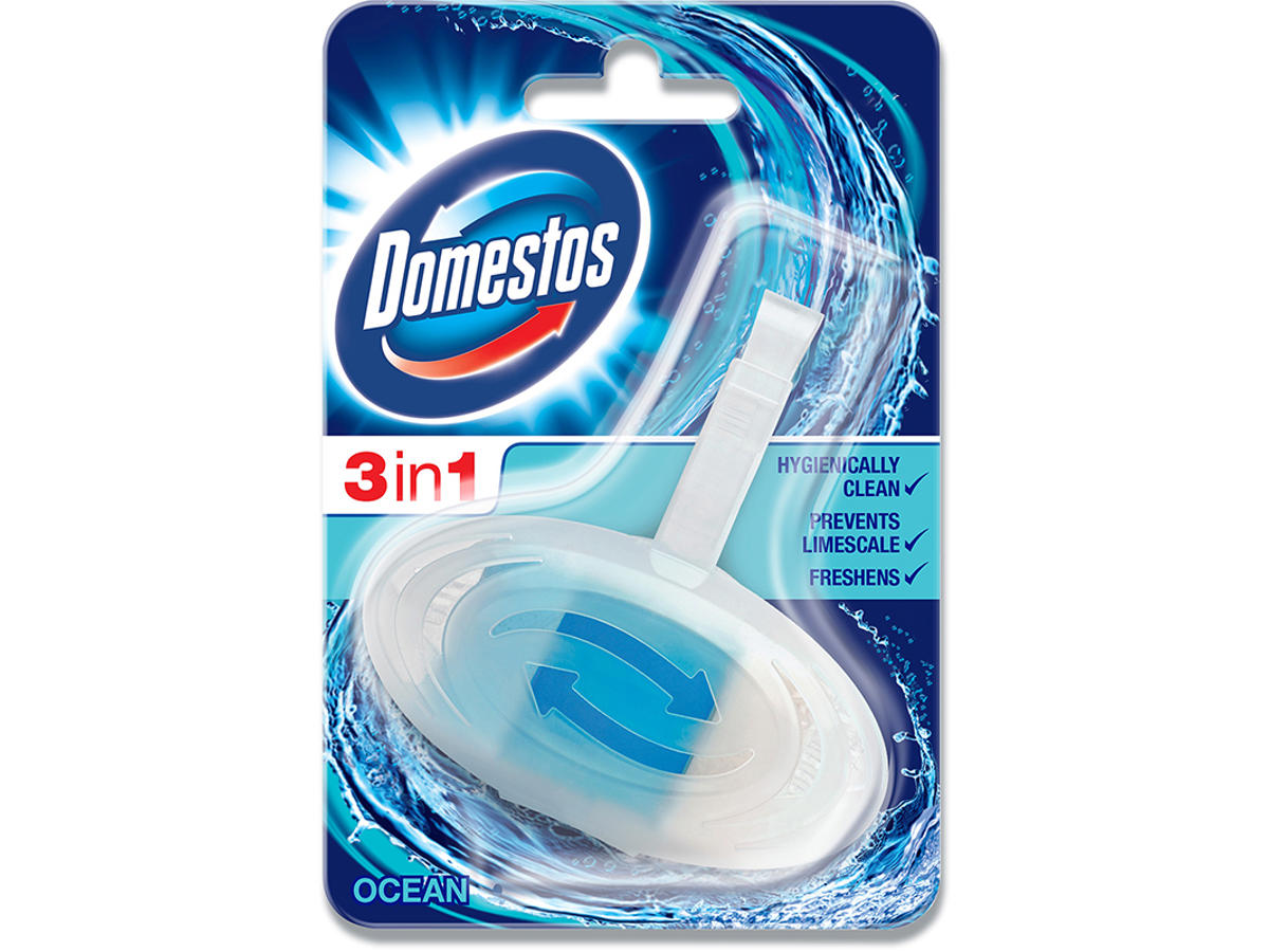 Toiletskyld, Til montering på kumme, 3in1, ocean 12stk, Domestos