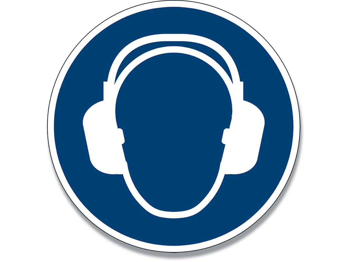 Registreret permanent påbudsskilt "Anvend hørebeskyttelse" M003 i henhold til ISO 7010.