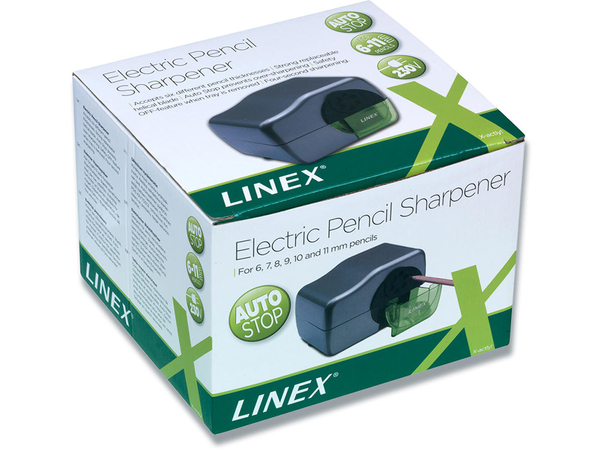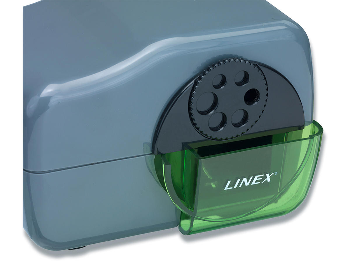 Spidsning starter automatisk, når blyanten skubbes ind og stopper, når blyanten er spids. Maskinen starter kun, hvis skuffen til til affald er sat korrekt på plads. Sugekopfødder sikrer stabilitet under brug.