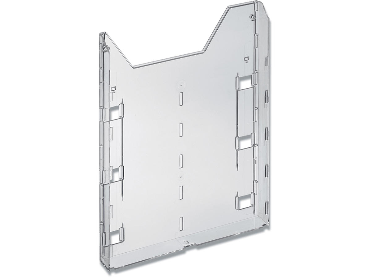 Kombiner og udbyg som det passer dig, med den multifunktionelle COMBIBOXX serien. Brochureholder (udvidelse model) i transparent plast til dokumenter lidt bredere end A4 stående 240mm, så selv mapper i A4 format får plads i. Maksimal kapacitet 24mm tykke bundter. Holder kan placeres opretstående på et bord eller sættes op på en væg ved at dreje bagpanelet/bærelementer 180 grader. Denne artikel er til for at udvide en eksisterende komplet brochureholder. Dette sæt indeholder kun en bakke uden bærerelementer og uden frontplade. Mål 424x320x34 (BxHxD)