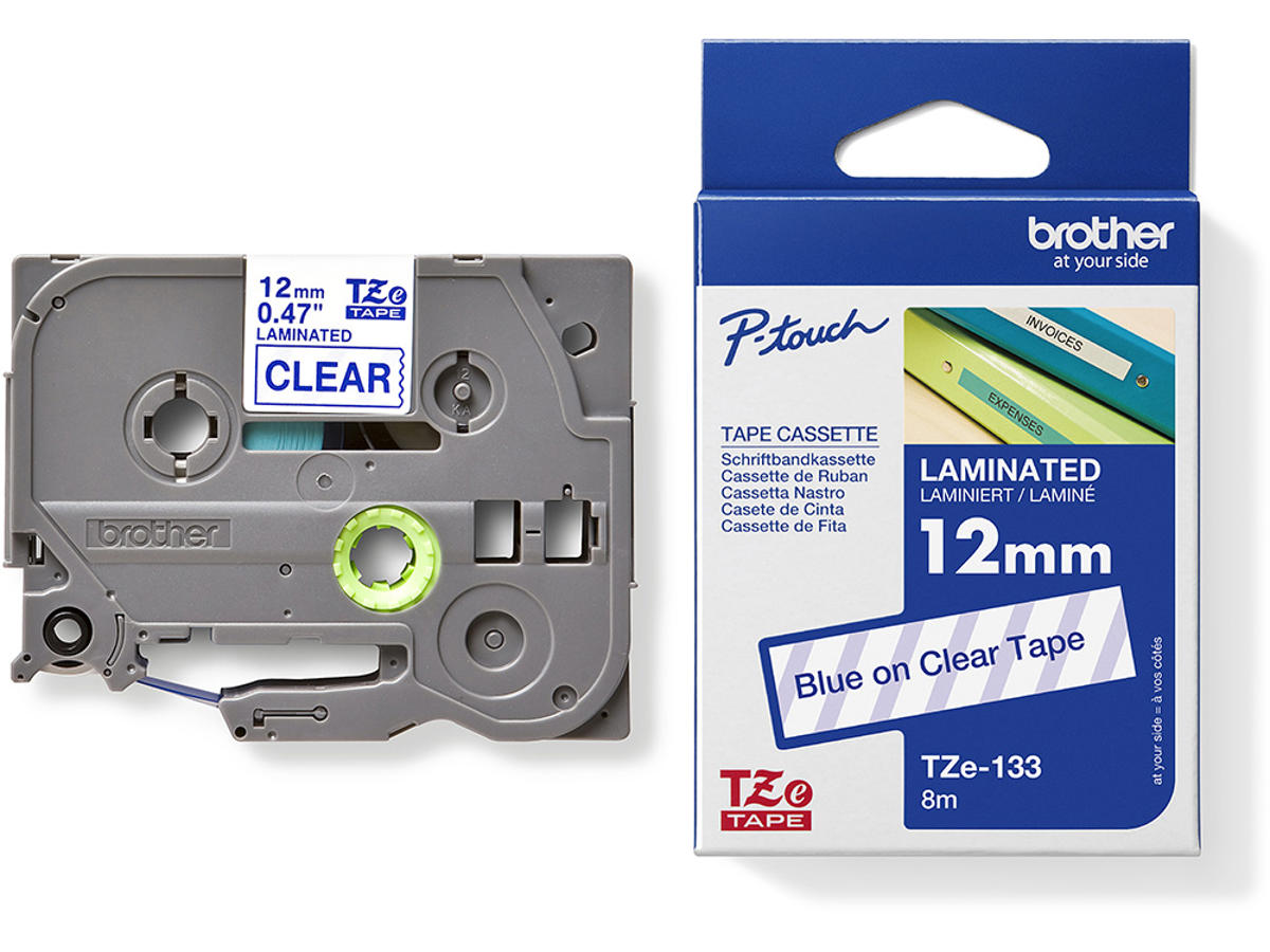 Labeltape, 12mm x 8m, Blå på Transparent, 1 rulle, Brother P-Touch TZe-133