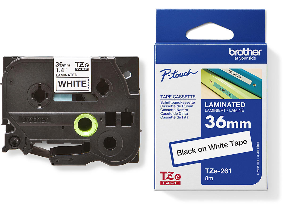 Labeltape, 36mm x 8m, Sort på Hvid, 1 rulle, Brother P-Touch TZe-261