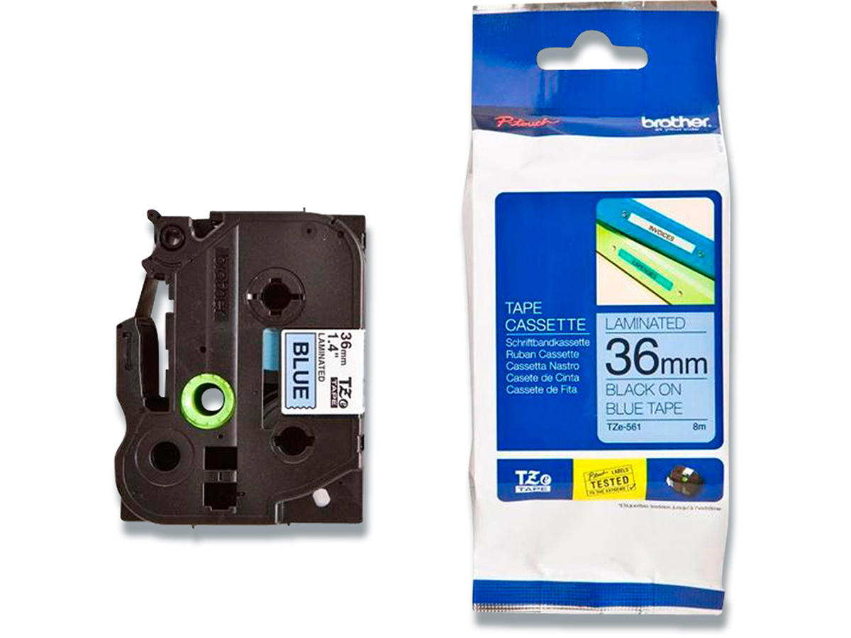Labeltape, 36mm x 8m, Sort på Blå, 1 rulle, Brother P-Touch TZe-561