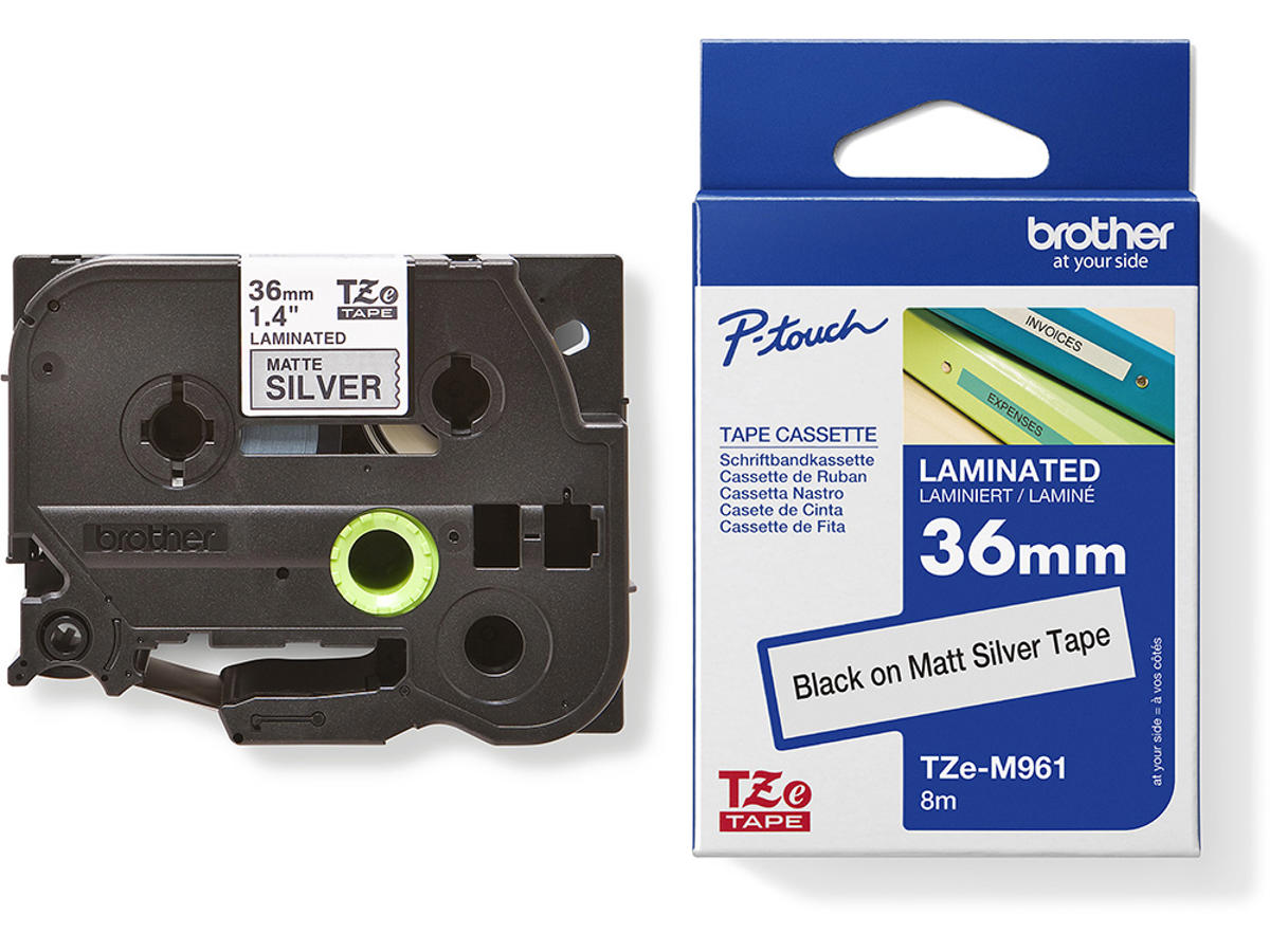 Labeltape, 36mm x 8m, Sort på Mat Sølv, 1 rulle, Brother P-Touch TZe-M961