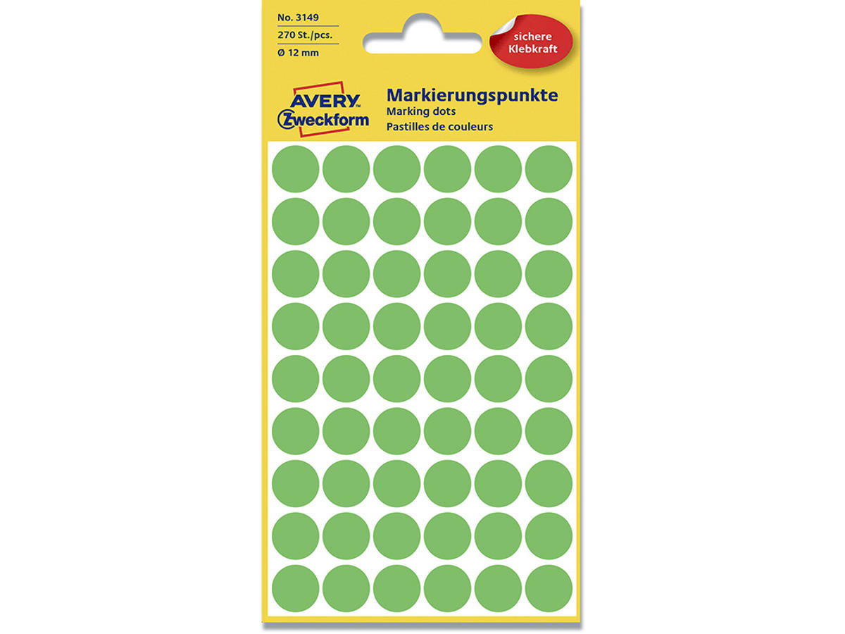 Etiketter, Ø12 mm, Neon grøn, 270 etiketter i alt, Avery