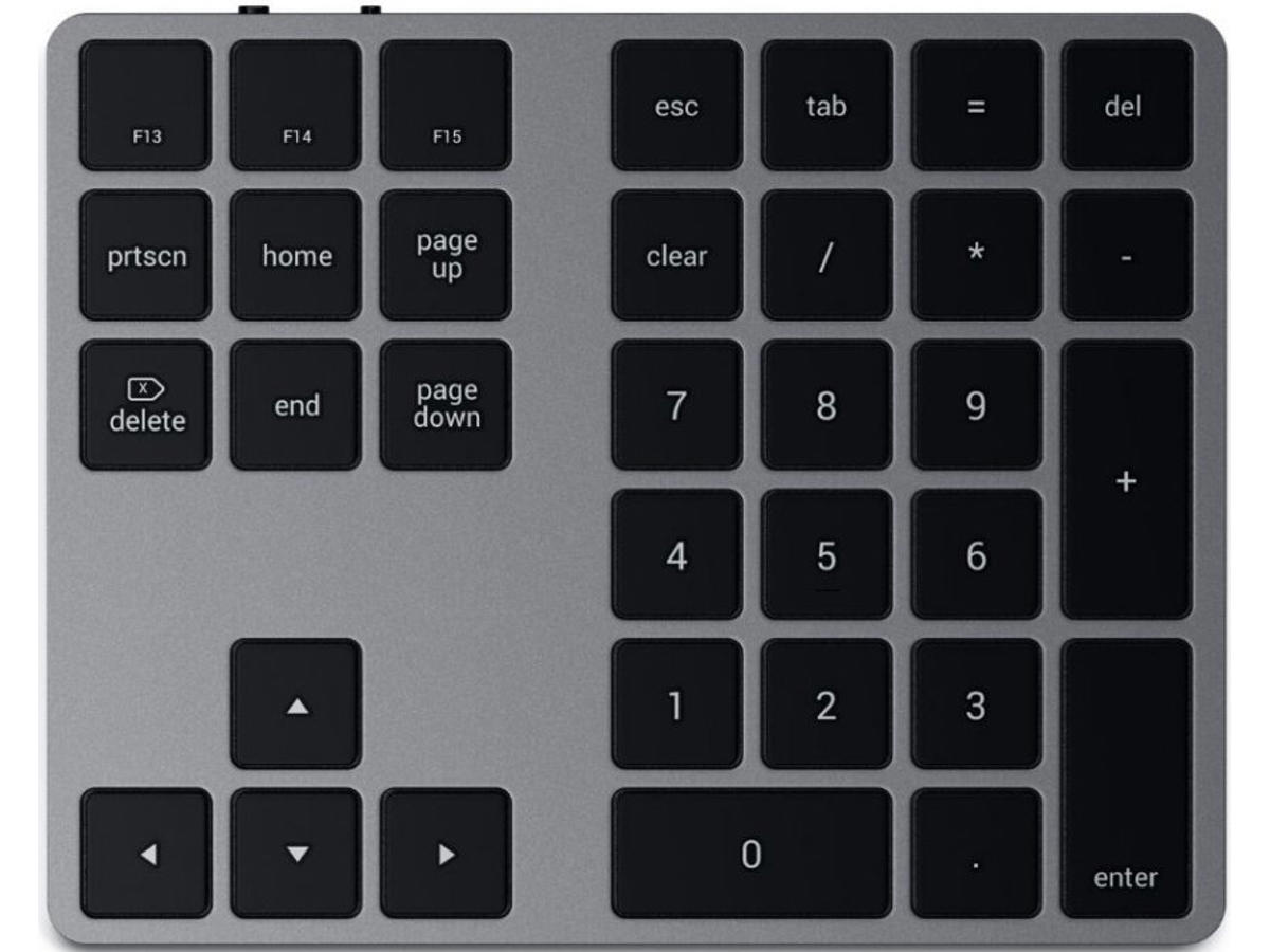 Satechi ST-XLABKM. Enhedsgrænseflade: Bluetooth, Antal taster på tastatur: 33, Formål: Universel. Produktfarve: Grå. Vægt: 124,7 g