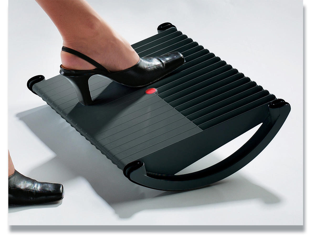 TWIN TURN® Fodstøtte - giver variation og velvære - TWIN TURN® har to gode sider: Den ene med trinløs vinkling, den anden med fast skrå stilling - Stor fodplade med god plads til fødderne