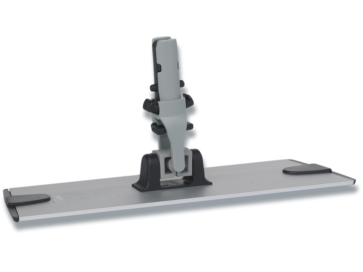 Fremfører der anvendes til rengøring af gulve, vægge, lofter, tavler og borde. Med unikt fleksibelt drejeled, der muliggør rengøring i alle positioner. Drejeleddet kan nemt låses i flere positioner, hvis man ønsker at arbejde i lige baner, fx på lofter og lange gange. Vinklen forøger rækkevidden pr. moppe. Velcrobåndene er let udskiftelige, da endebeslagene nemt kan tages af. Fremføreren passer til alle mopper med velcrobagside og skafter med kliksystem.