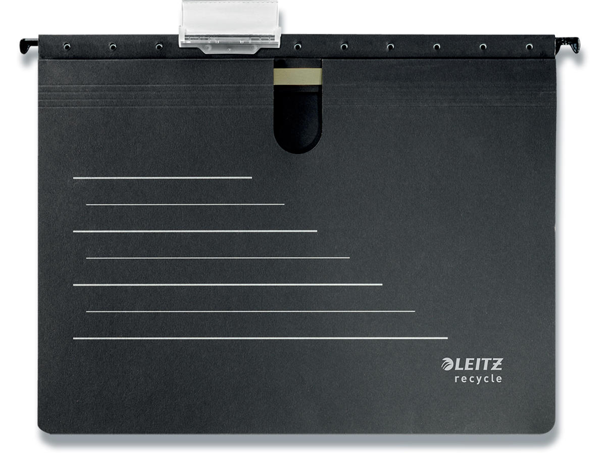 Iøjnefaldende hængemappe i premium kvalitet egnet til A4. 100% recirkuleret karton, 100% recirkulerbar og med Blå Engel miljøcertificering. Maksimer lagerpladsen med lodret arkivering for at holde hullede papirer ryddelige og tilgængelige. De stærke holdbare, hængende skinner tåler kraftig anvendelse, og den medfølgende etiketholder hjælper med at organisere og identificere indhold. Denne robuste hængemappe komplementerer perfekt andre produkter fra Leitz Recycle-serien og er lavet til at holde. Moderne og stilfulde kontorartikler, som vil passe ind på kontoret og i hjemmet.