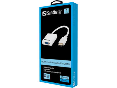 Har du HDMI i en enhed, som du ønsker at tilslutte din skærm med VGA indgang, er denne adapter løsningen. Lyd understøttet. Mulighed for USB strømtilslutning.
