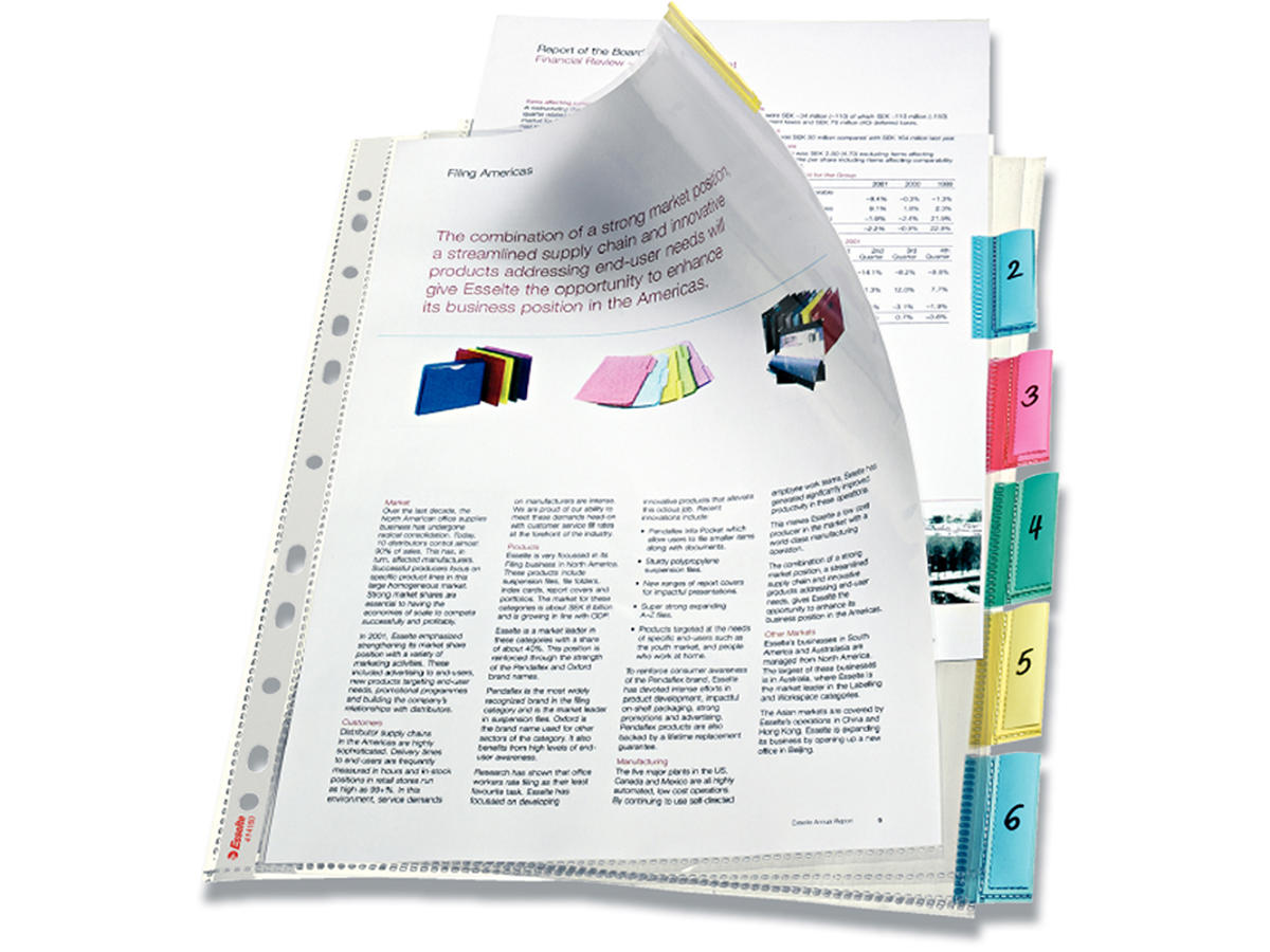 Kvalitets kombination af lomme og indeks med lommer som faneark. Multihulning giver nem opbevaring af dokumenter i brev- og ringordnere