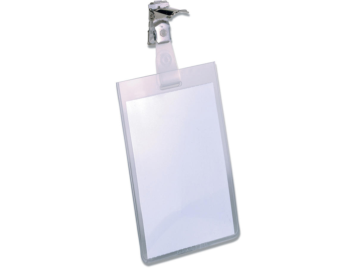 Navneskilt i højformat med klemme på strop (seleclips). Navneskiltet hænger altid i den rigtige position idet at metalklemmen er drejelig. Ved fastgørelse og lukning af strop forsegles lommen, sikre papir indstikket. Hul design tillader kombination med kæde, yoyo eller tekstil halsbånd. Indstik medfølger. Mål indstik: 90x60mm (HxB). Indstiksetiket på A4 ark til udskrivning i printer kan bestilles separat (Durable art nr 145502). Design selv en personlig designet kongresmærke med gratis skabelon - Klik her