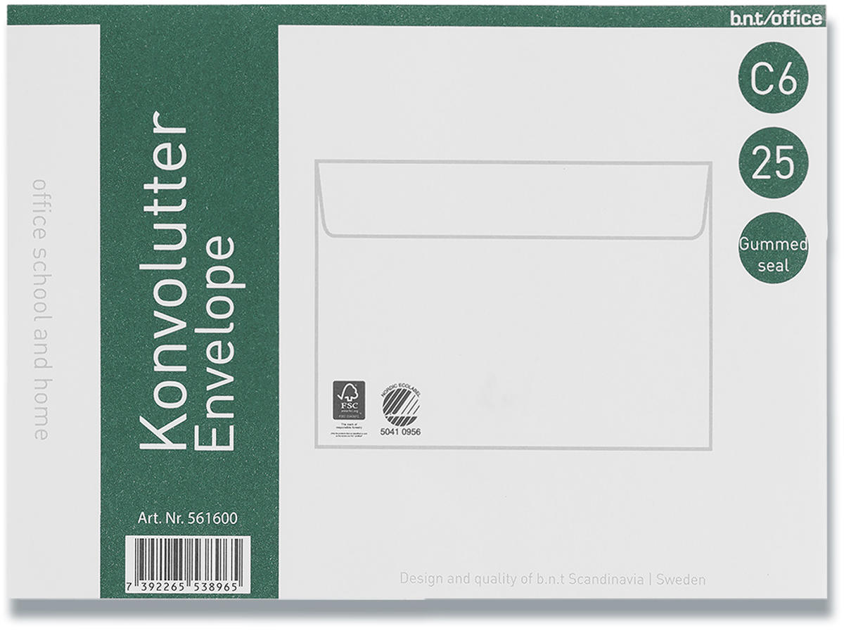 Kuverter C6 70g fugtgummi 114x162mm 25stk/pak