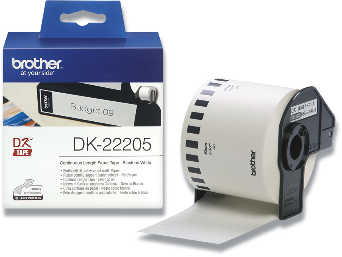 Labeltape, 62mm x 30.48m, 1 rulle, Hvid, Brother P-Touch DK-22205