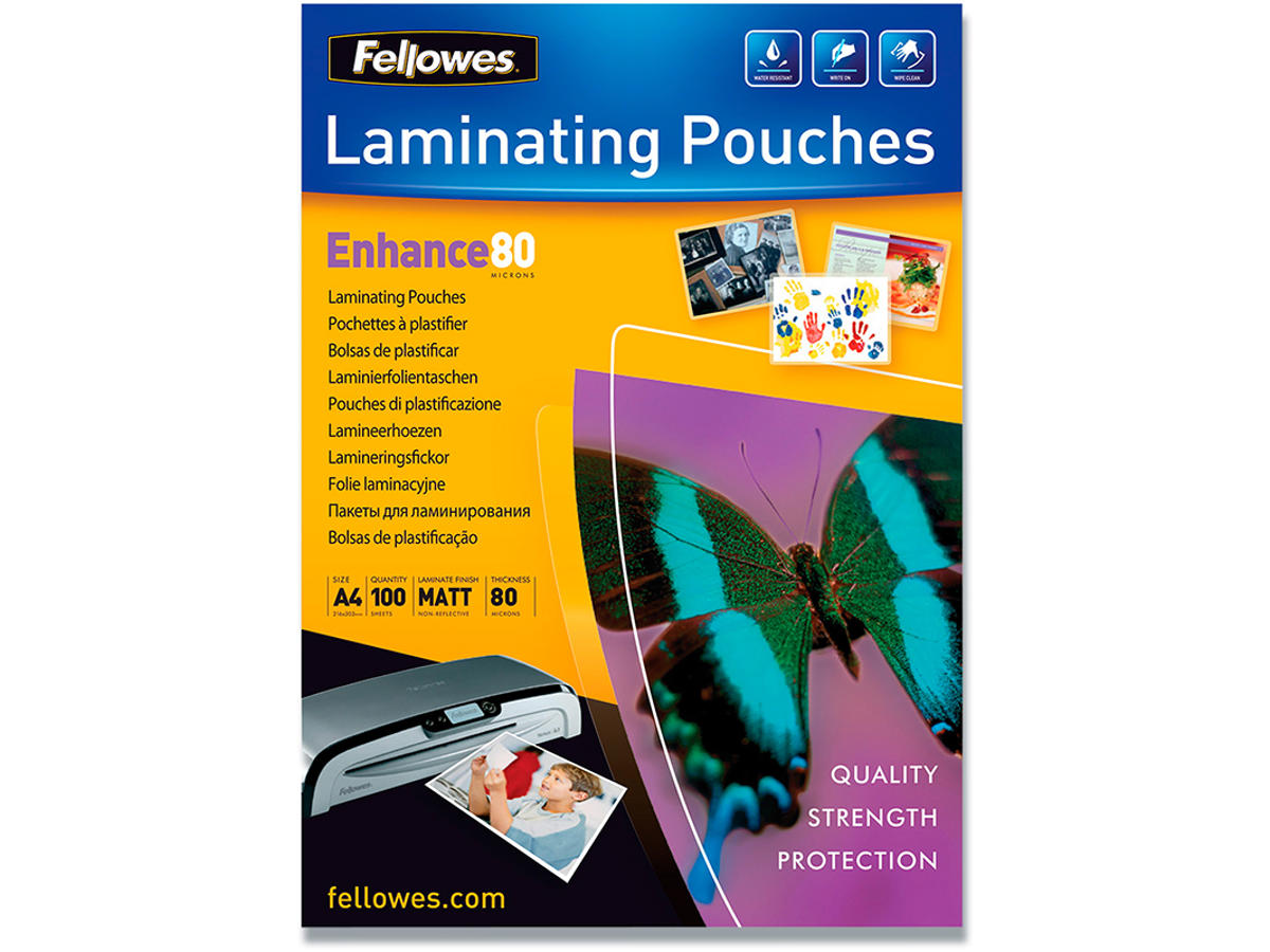 Lamineringslommer, A4, 216x303 mm, 80 micron, Fellowes Mat
