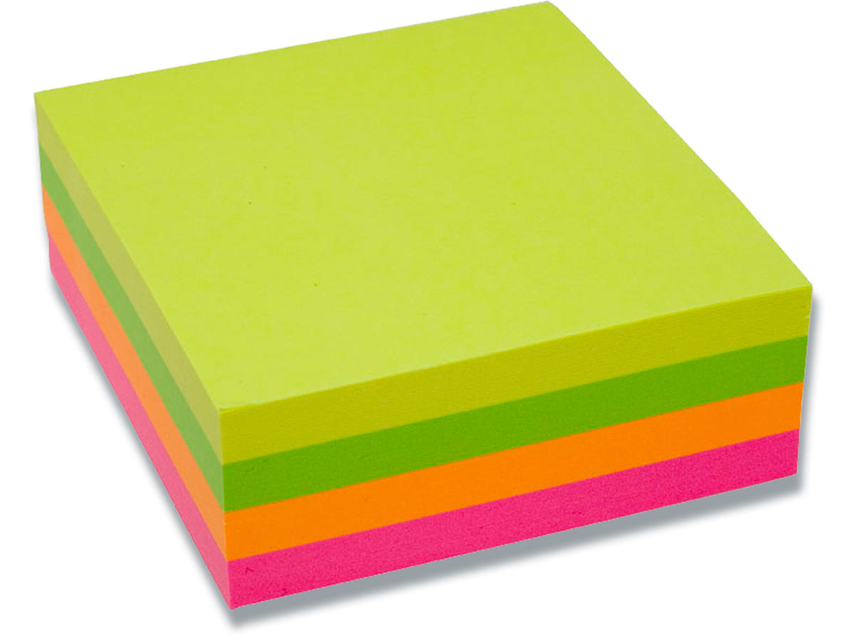 Memonotes, 76x76 mm, 4 assorterede neon farver, 1 blok, Stick'n Cube