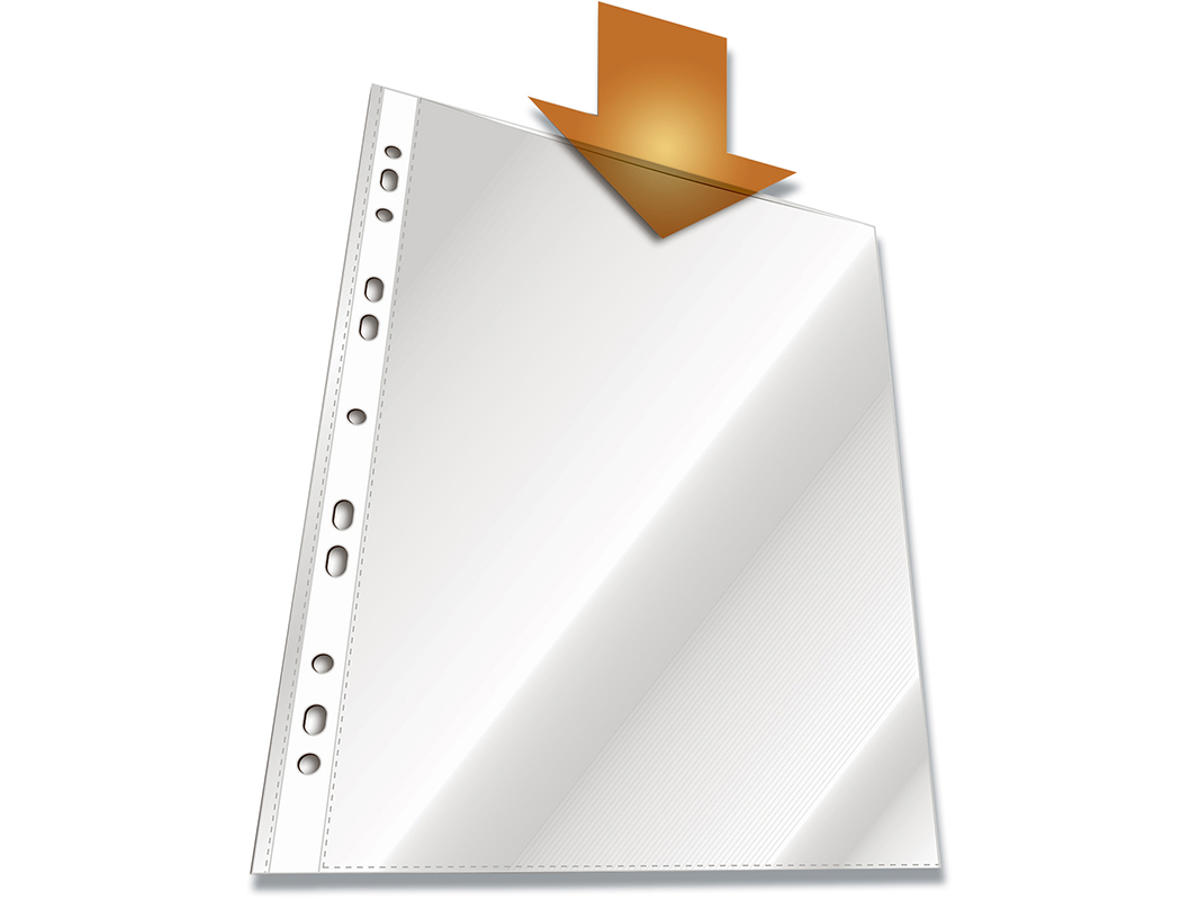 Klar plastlomme i 0,05 mm pp-plast. Forstærket multihuller og åbning i top. Kopisikker.