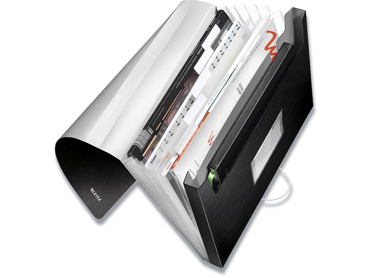 • Attraktiv elastikbånd-lukning, der giver sikker transport af dokumenter