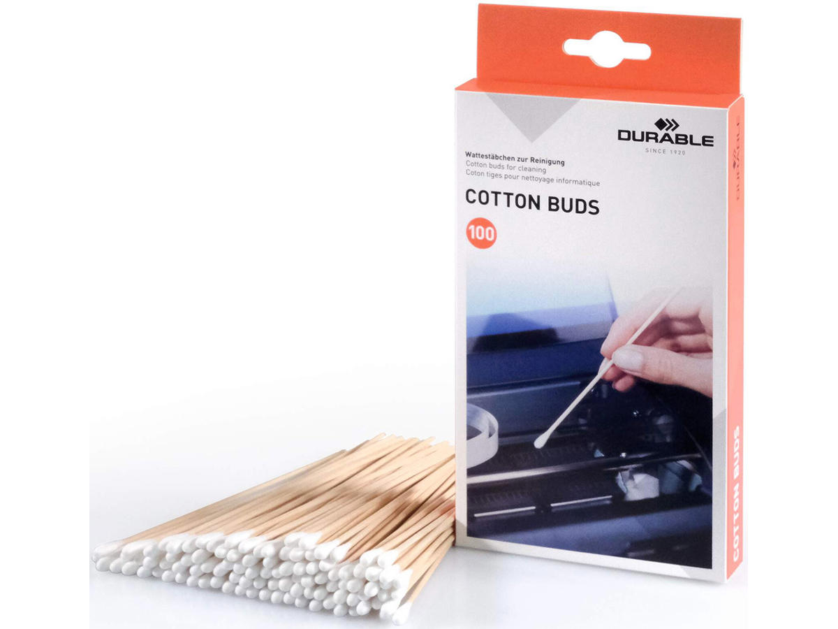 Ekstra lange vatpinde til rengøring af vanskeligt tilgængelige steder på kontorudstyr.